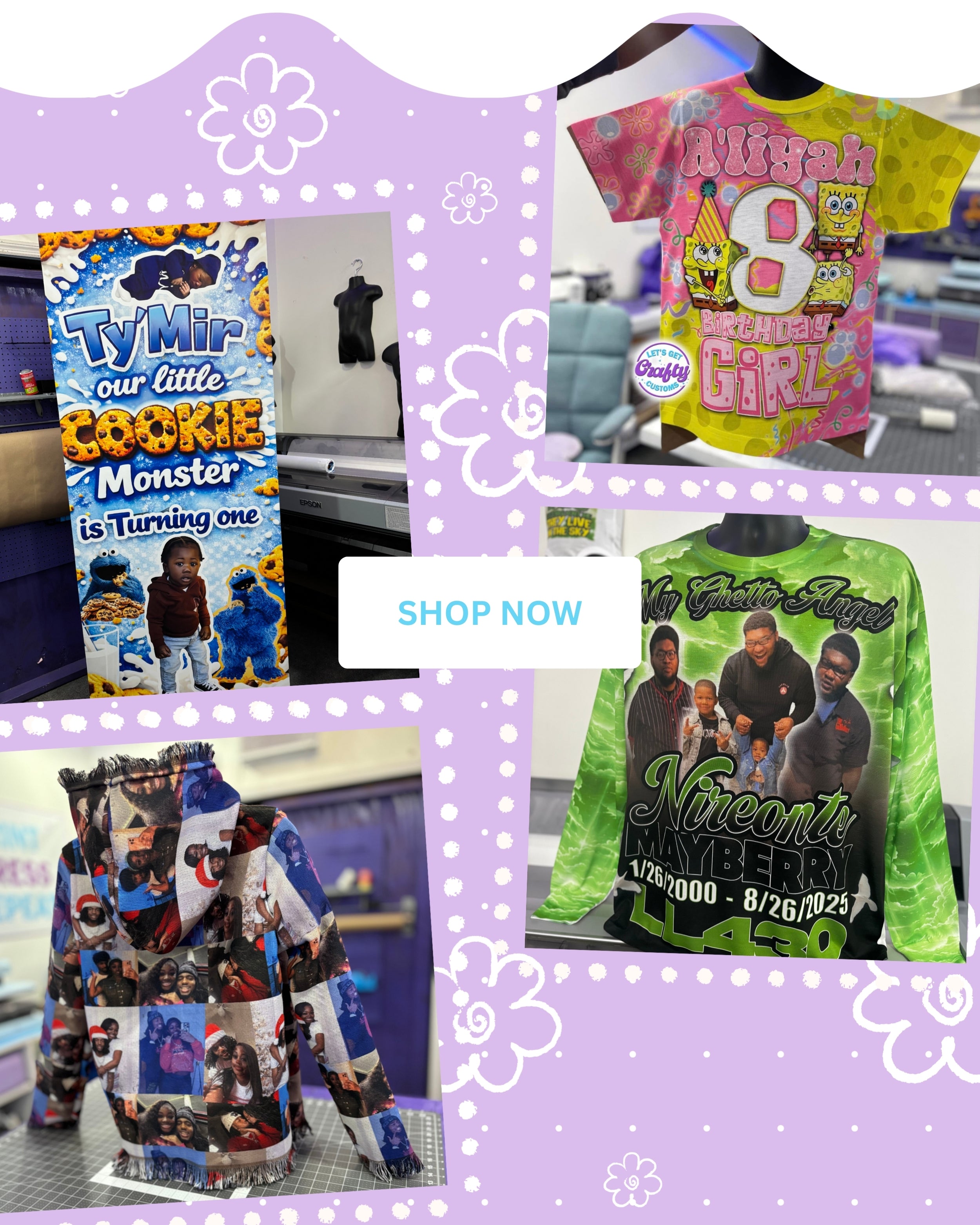 Hi, I’m Kristal & thank you for visiting my online shop! I’ve been creating for almost 6 years and love turning ideas into something unique. From custom shirts to bold banners, I make pieces that stand out! I also print wide-format transfers for other creators who don’t have the equipment to go big. It’s all about helping you bring your vision to life.